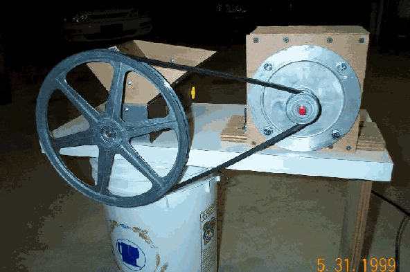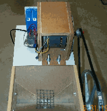 Next comes the question of which motor do I choose. This is not an easy question. Certainly one with less that 1/2 Hp (horsepower) should be sufficient. Motors come in a variety of shapes, sizes, RPMs, and torques. A fellow home brewer who had motorized his Valley Mill suggested to me the motor that he chose. It came from a surplus catalog. www.herbach.com Since he had utilized the motor with his mill, I felt it would be appropriate for my application as well. The motor I chose was a Robbins and Myers KPG motor (#TM89MTR1882/C. It was used in a prior life as a photocopier motor). It was 115 VAC (volts alternating current – household wall outlets), 1/8 Hp, 1725 RPM, capacitor start (included), clockwise rotation 3/8" shaft, with a high running torque. It was also only $3.25 plus shipping, but it weighed 15 lbs, and the minimum order from them was $25.
